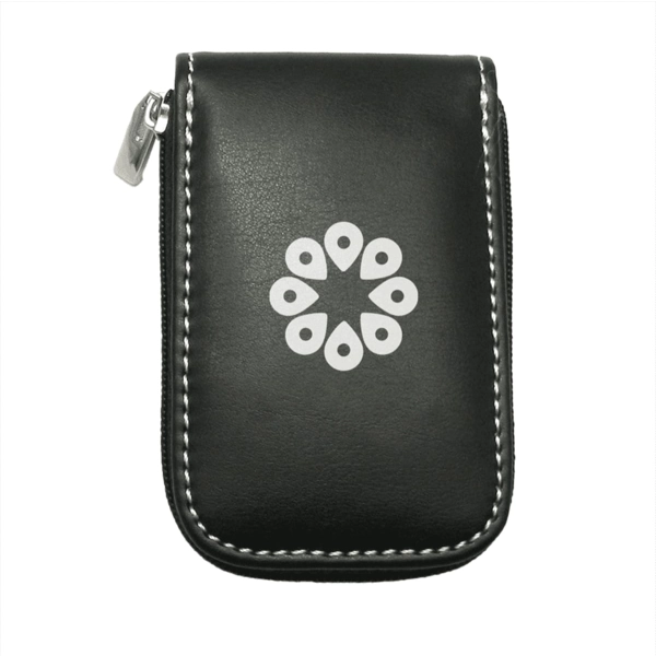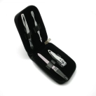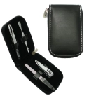 Handy 4pcs manicure set in a stylish black leather-look zippered case with contrast stitching.