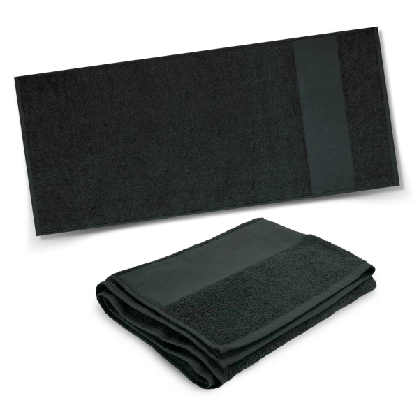 Compact 120cm x 60cm towel which is manufactured from soft 350gsm cotton terry towelling. It has a smooth fret area for branding.