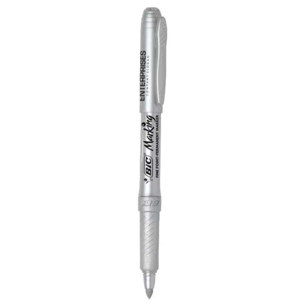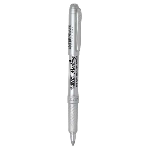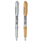 A glossy-coloured barrel paired with metallic gold or silver accents to match the ink colour, and a simple cap for easy use.