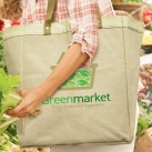 Extra-large tote bag with a gusset which is ideal for carrying bulky items. It has long woven carry handles so it can be comfortably carried on a shoulder and they are secured with brass rivets for added strength. Market Tote is manufactured from 250gsm laminated natural linen with unbleached natural calico trim around the top.