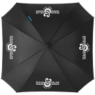 Automatic opening exclusive design black and silver umbrella with fibreglass ribs and shaft, packed in a non woven Marksman gift pouch. Available in 2 colours, Black/PMS801c and Black/Silver.