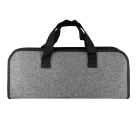 This exquisite Mavrick BBQ tool set is made of solid stainless steel with durable rubber wood handles painted in black and packed into a portable grey zip up carry case. This stylish grey carry case has a black edge and webbing handles. The BBQ tools are made of professional quality 420 stainless steel making this grill set durable long lasting and easy to clean. This Mavrick BBQ set contains tongs spatula chopping knife 2x forks and 2x knives. A great handy BBQ set for your corporate outdoor activities.