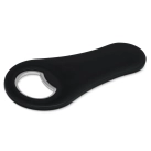 Plastic and metal bottle opener with a magnet for storing it on a fridge.