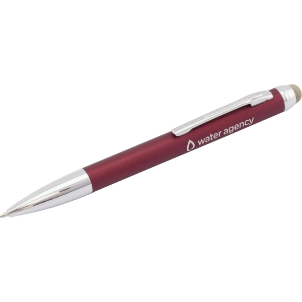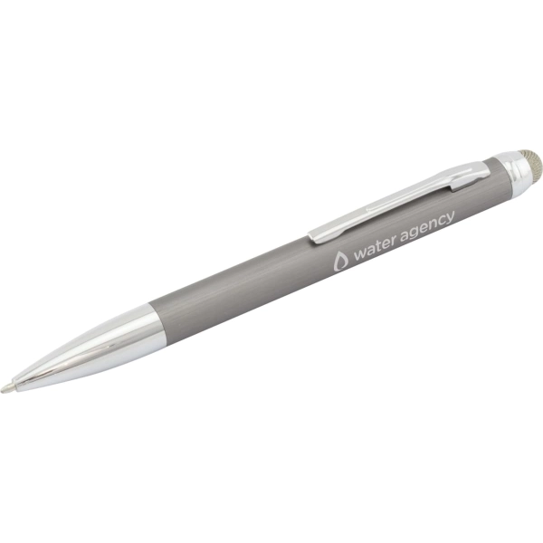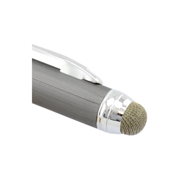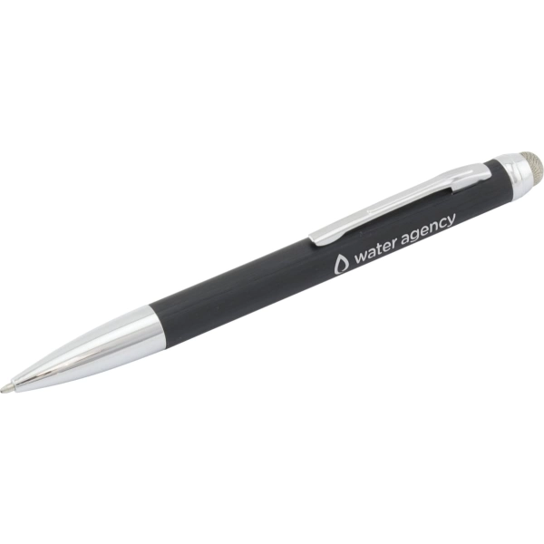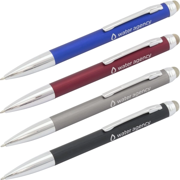 Crafted from brushed aluminium, this quality twist action pen incorporates a super-sensitive fibre stylus ensuring smooth, friction-free movement on a smart phone or tablet.