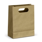 Medium-sized carry bag made from 180gsm paper with die cut handles. The handles and gusset are reinforced with 600gsm card for added strength. This bag is portrait orientated with handles and gusset along the shorter edges.