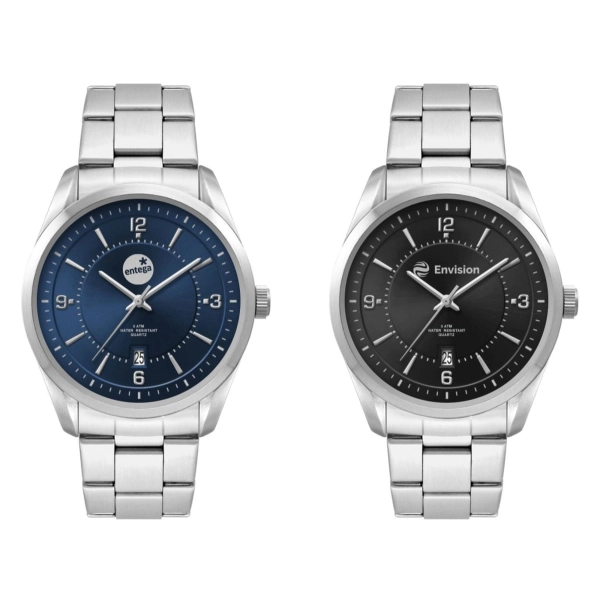 This quality mens casual dress watch features an Ionic steel plated brushed alloy case, stainless steel band and is water resistant to 3 atm’s. This watch is avaiable with the choice of sunray black dial or sunray blue dial. For ladies size see W6015-L-SS.