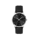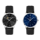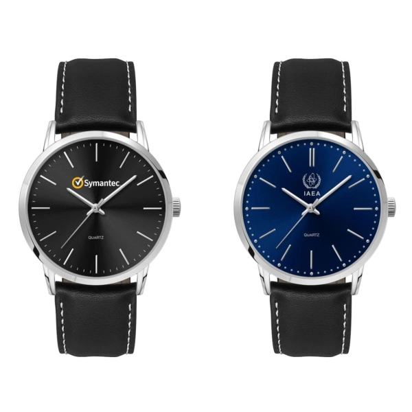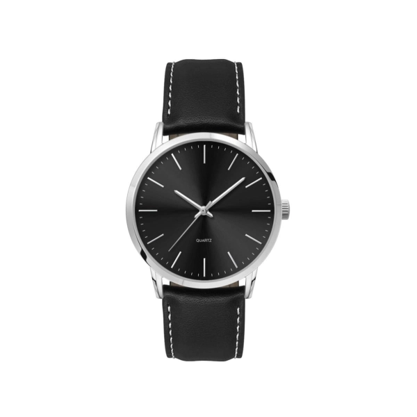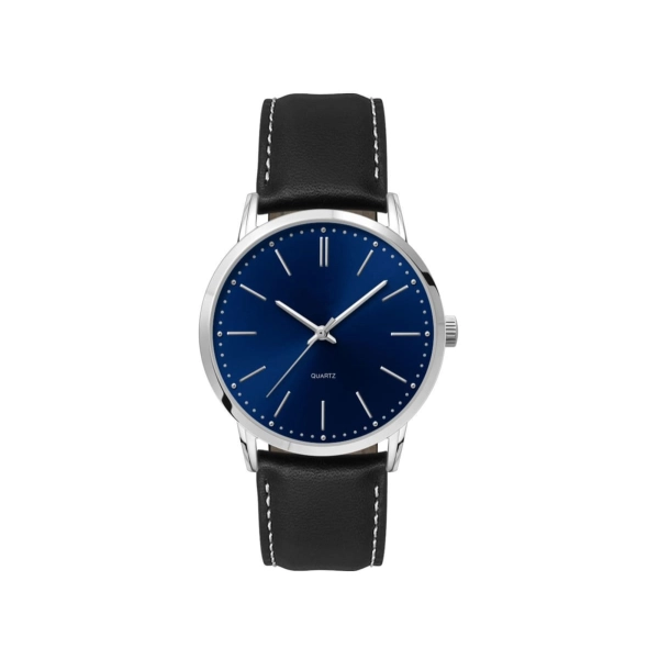 This quality mens dress watch features an Ionic steel plated alloy case, padded black natural leather strap with white stitching and is water resistant to 3 atm’s. This watch is avaiable with the choice of sunray black dial or sunray blue dial. For ladies size see W6016-L.