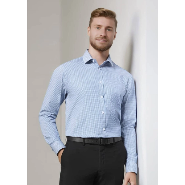 Features: Modern collar, chest pocket, twin back pleats and adjustable cuff