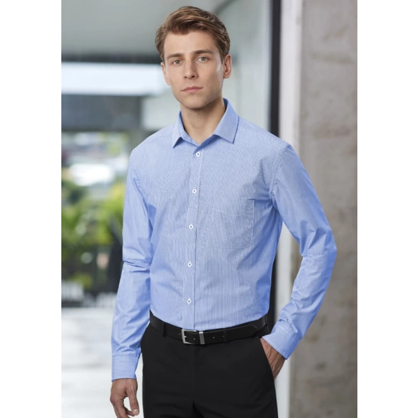 Features: Modern collar, chest pocket, twin back pleats and adjustable cuff