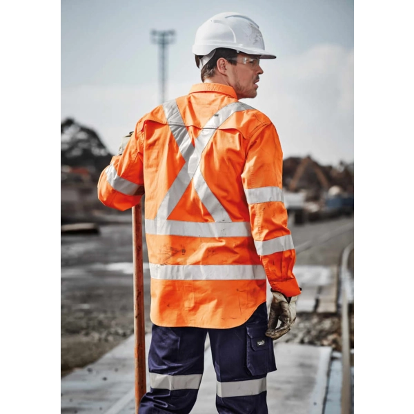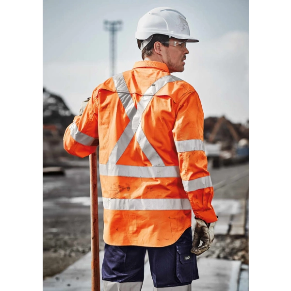 Mens Hi Vis X Back Taped Long Sleeve Shirt