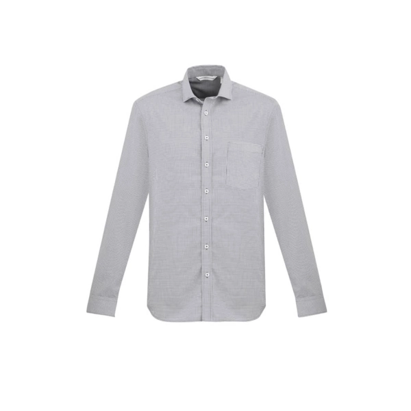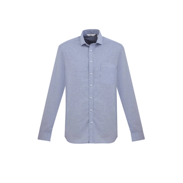Mens features modern collar, chest pocket, twin back pleats and adjustable cuff