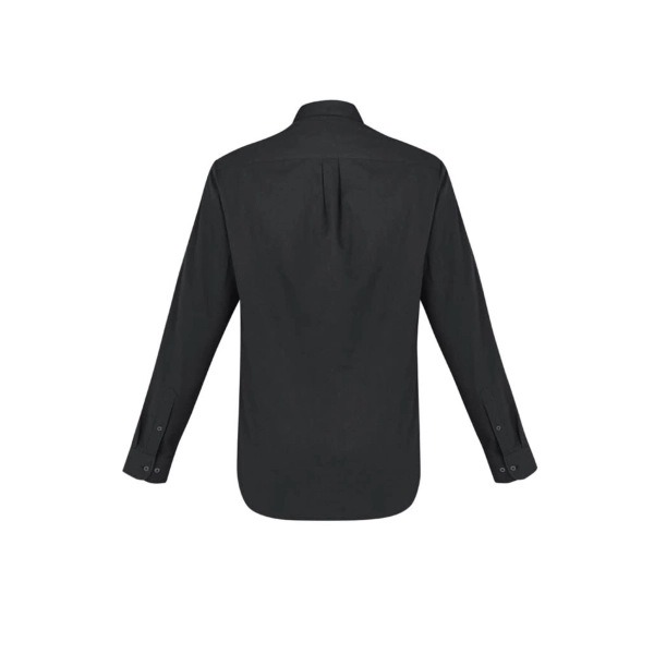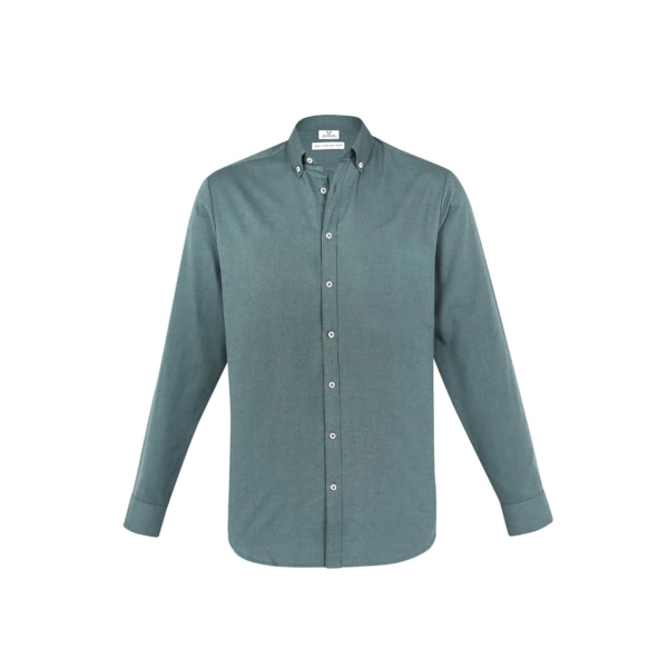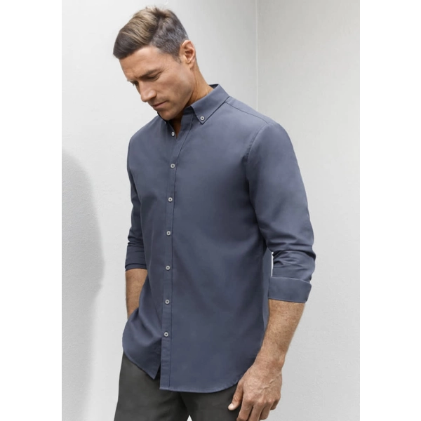 Mens style features modern button-down collar, back box pleat and adjustable cuff, includes loose pocket