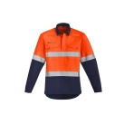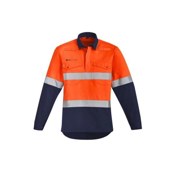 Mens Orange Flame Hi Vis Closed Front Shirt - Hoop Taped