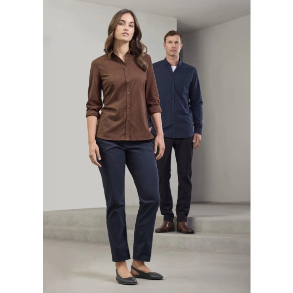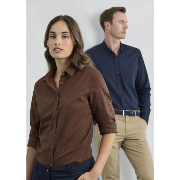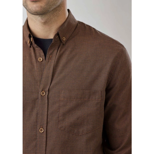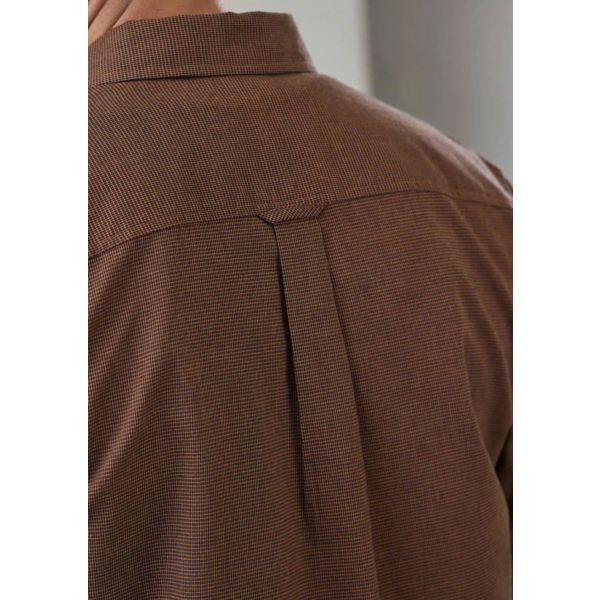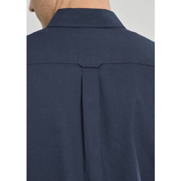 Fabric: 60% Cotton, 40% Recycled Polyester; Yarn-dyed Micro-check; 120 GSM; UPF Rating 15+