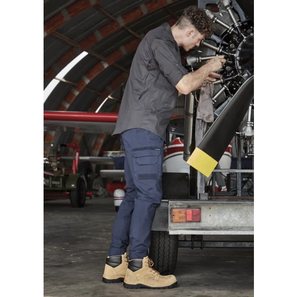 Features: Cotton stretch fabric moves with you as you work