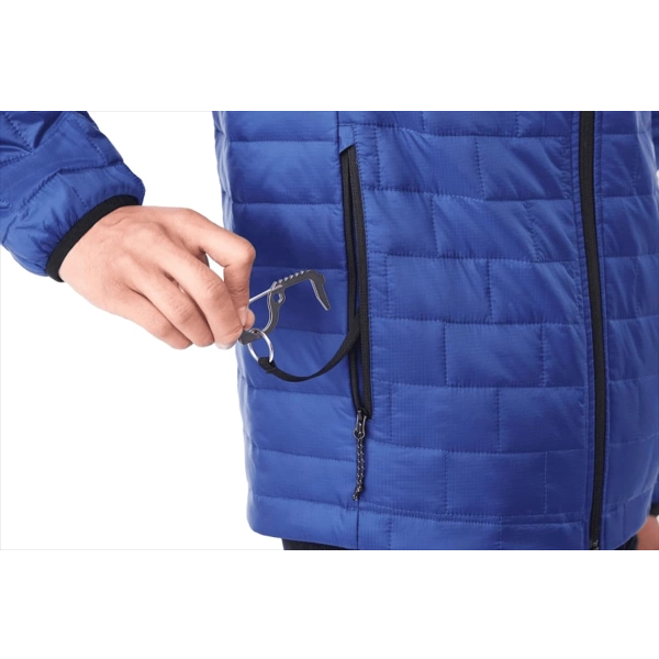 The Telluride Packable Insulated Jacket keeps you warm and looks out for your health. On top of its stylish retail design, this jacket contains a removable No Contact Keychain in the right pocket, which lets you turn door handles, press elevator buttons and use ATM keypads without touching them. Its ultra-lightweight insulation and water-repellent finish keep you warm and dry without weighing you down. It even packs away into a built-in stuff sack for easy stowing. As practical as it is warm, this insulated men's jacket includes lots of functional features, like zippered pockets to keep your valuables safe and an interior pocket with hook-and-loop closure. The Telluride is your go-to jacket for – well, anywhere.