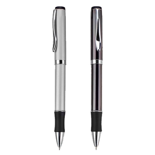 Quality twist action metal pen made of copper shiny silver chrome fittings with a curved rubber grip engraves to champagne colour. It has a metal Cross-Type German manufactured black ink refill 1800 meters writing distance tungsten carbide ball provides you with quality writing.