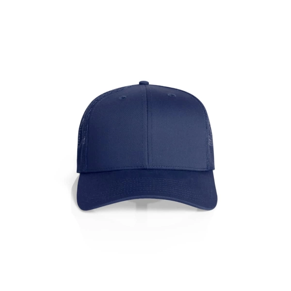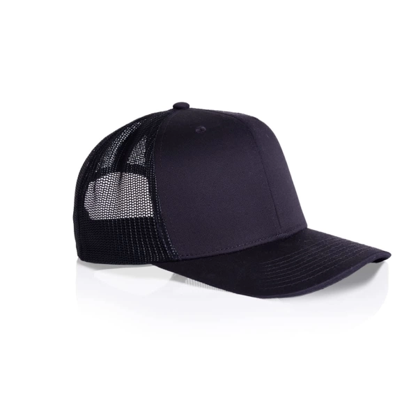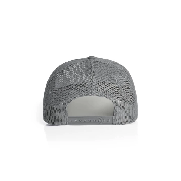 High profile - snapback cap, shallow curved peak, tonal mesh back, plastic snapback, tonal under-peak lining