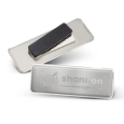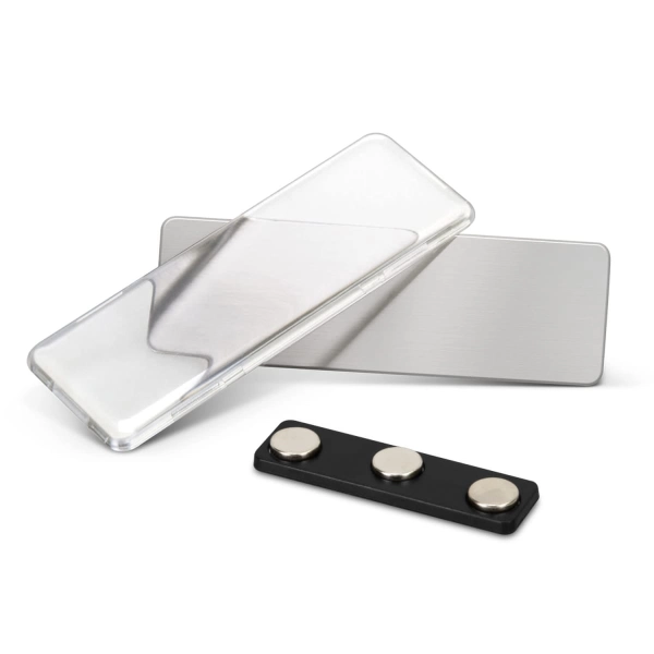 * Rectangular metal name badge with magnetic backing