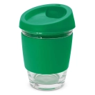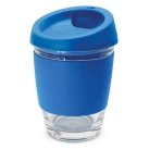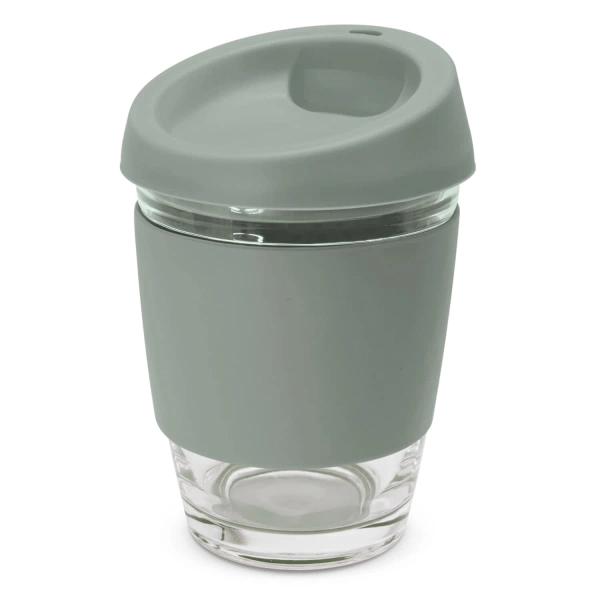 Fashion inspired 340ml reusable glass coffee cup with a secure push on silicone lid and a wide heat-resistant silicone band. The lid and band can be mixed and matched in any colour combination from the standard colours at no extra cost. The silicon band makes it easy to hold when containing hot coffee. Up to five different colour combinations are included in the price and more are available for an additional charge. Glass is a natural choice for a clean, pure taste and it is a reusable alternative to single-use paper cups. Metro Cup is presented in an unbleached cardboard gift box with a window to show the branding and product care instructions are printed on one side. An optional gift tube is available for presentation. This product is not dishwasher safe and handwashing is recommended.