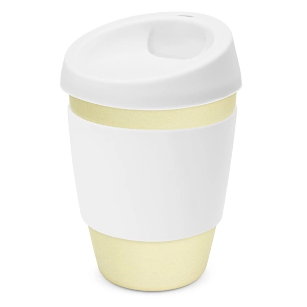 Eco inspired 340ml reusable coffee cup which is manufactured from a unique 50/50 blend of bamboo and BPA-free melamine. Using bamboo to manufacture a reusable coffee cup reduces the amount of plastic and produces a trendy natural look. Metro has a secure push on silicone lid and a wide heat resistant silicone band. The lid and band can be mixed and matched in any colour combination from the standard colours at no extra cost. Up to five different colour combinations are included in the price and more are available for an additional charge. Supplied in a natural gift box. This product is not dishwasher safe and handwashing is recommended.