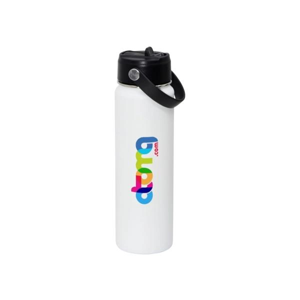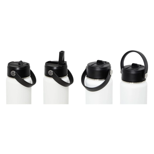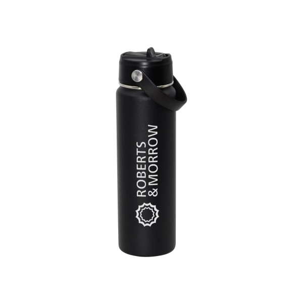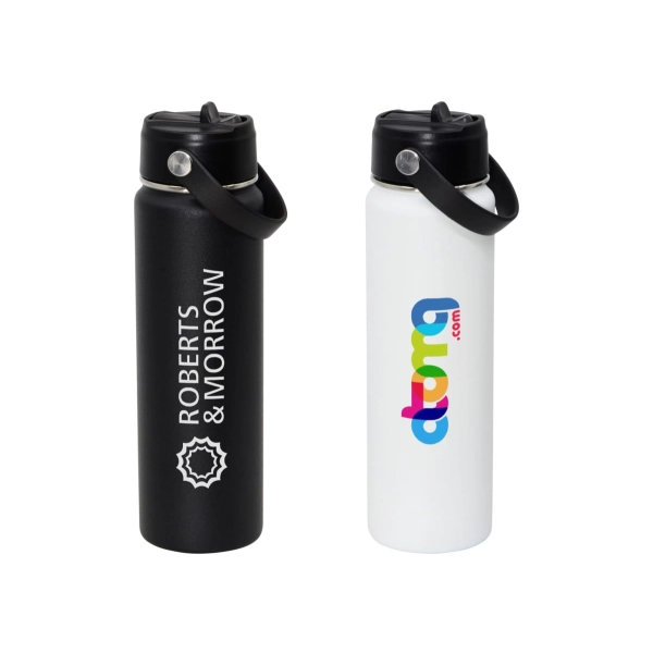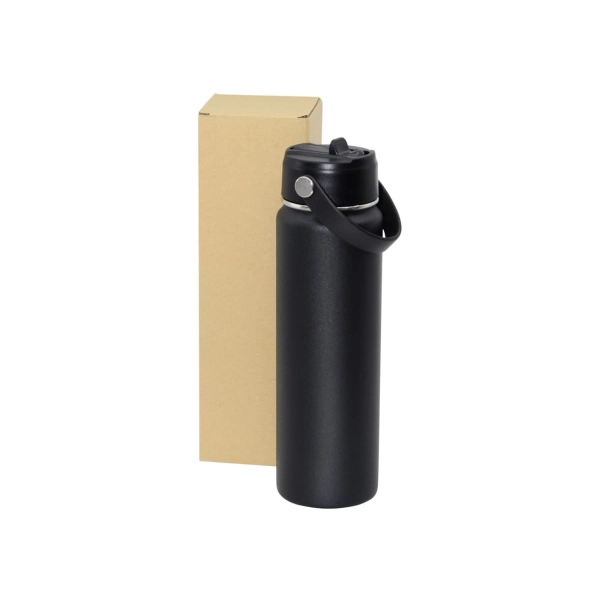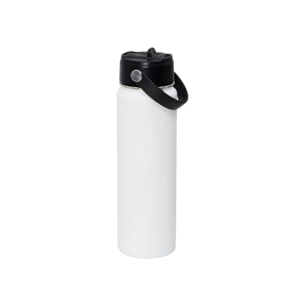 Metro Sipper is a top of the range BPA free insulated vacuum sipper bottle. Ideal for use when going for a walk, heading to the gym, spending the day in the office or when you are just out and about. It features our pro-grade 18/8 double wall stainless steel construction and unique internal copper lining (designed to keep drinks cold for up to 12 hours). This bottle has a stylish screw on lid with a flip out drinking straw as well as a rotating carry handle. This 800ml capacity bottle has a super tough matt powder coated finish and is available in black or white and is supplied packed in a natural coloured gift box.