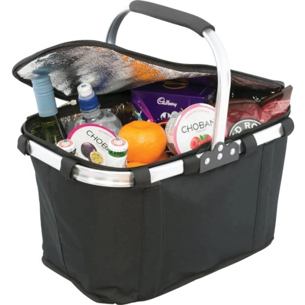 Arrive in style at your next picnic with Miami Picnic Cooler in hand. Designed to keep your food and drink cool, this useful carry basket features an insulated foil lined interior, tough 600d outer and foldable aluminium frame with soft-feel rubber grip handle. Available in Grey, Black, Navy, Royal Blue or Red.