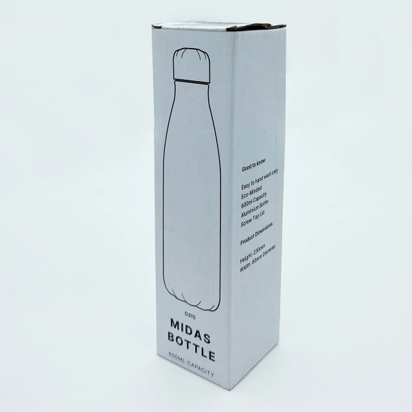 The Midas Bottle combines classic refinement with a modern design, offering a sleek aluminium build that exudes sophistication. Perfect for making a lasting impression, this bottle brings a touch of elegance to your brand. BPA-free for added peace of mind.