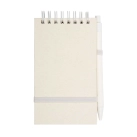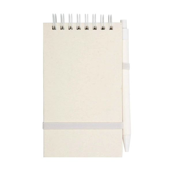 Introducing the Milko Notepad with Pen—a practical and eco-conscious choice for your daily jotting needs. This spiral-bound notepad features 70 leaves, providing 140 lined pages (70gsm), all made from recycled milk cartons. Equipped with a white elastic retaining strap and pen loop, it ensures your notes and pen stay securely in place. The included white barrel cardboard push button pen with black ink complements the notepad perfectly. Compact and sustainable, this notepad is ideal for quick notes, lists, and on-the-go writing.