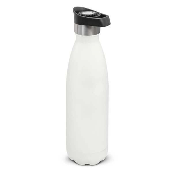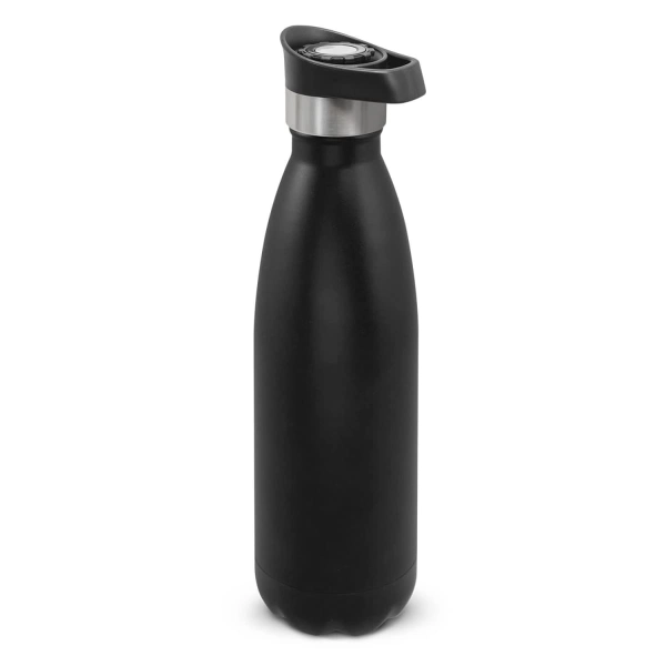 Trendy BPA-free 500ml double wall, vacuum insulated stainless steel drink bottle with a stunning powder coated finish. It will keep drinks cold for 24 hours or hot for up to 12 hours. Mirage has a secure, spring activated push button lid with a carry handle and an ergonomically designed spout for pouring drinks. Remove the lid to drink directly from the bottle or simply push the button to pour. Mirage laser engraves to a shiny steel finish and is nicely presented in a black gift box. This product is not dishwasher safe and handwashing is recommended.