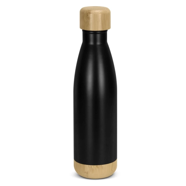 Elegant 500ml stainless steel vacuum bottle with a bamboo lid and base. It has a satin finish and comes in a natural gift box.