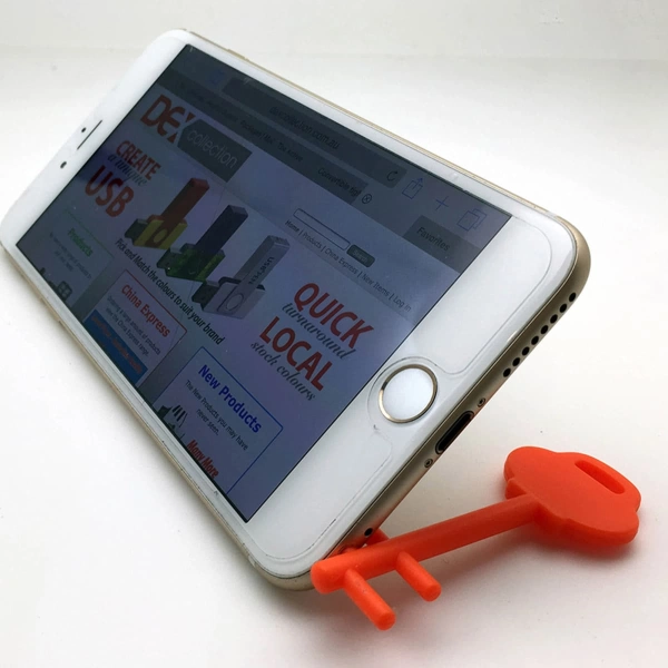 A handy key shape mobile phone stand can go with you anywhere. Simply insert the prong into the headphone jack and key stand rests against the front panel to prop up your phone a fantastic cheap promotional item.
