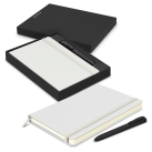 Premium Moleskine gift set which is presented in a smart black gift box. It includes a Large Moleskine Classic Hard Cover Notebook and a Moleskine Go Pen. The A5 notebook features 120 leaves (240 pages) of 70gsm Moleskine ivory-coloured lined paper with rounded edges, a bookmark ribbon, and an elastic closure for privacy. The Moleskine pen has a unique side opening clip that attaches firmly and neatly to any Moleskine hard cover notebook or planner. The Go Pen has a Moleskine refill with 3500 metres of black ink and a 1.0mm ballpoint tip for a smooth writing experience. Please note the notebook and pen cannot be supplied without the Moleskine logo. Moleskine reserves the right to decline any custom project or artwork that does not align with their brand on a case-by-case basis.