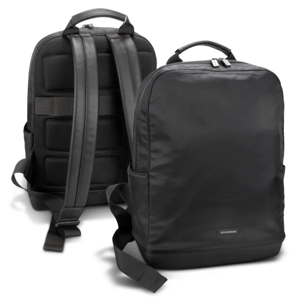 The Moleskine lightweight water-resistant backpack in smooth ripstop nylon is made for high-energy travellers and anyone who thinks creatively on the go. With its unstructured interior and padded compartment for devices up to 15-inch, this deluxe backpack makes space for all the belongings you never leave home without. It features a zippered main compartment, an internal zippered pocket, a notes pocket with two pen holders, a woven carry handle, and adjustable leather-look PU shoulder straps. A subtle rubber plaque with the Moleskine logo is visible on the front of the backpack. Please note this product cannot be supplied without the Moleskine logo. Moleskine reserves the right to decline any custom project or artwork that does not align with its brand on a case-by-case basis.