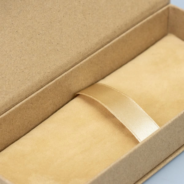 Stylish natural pen presentation box which will hold one or two pens. It has a padded velvet base, a magnetic closure and a ribbon with hidden elastic loops to secure the pens.