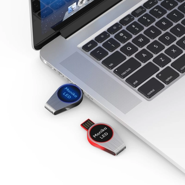 A stylish variation on the ever popular swivel flash drive, the Monika LED provides a bright LED logo when plugged in the computer. Engraved into a black background with a contrasting trim, A Grade memory, a 10-year data retention warranty and a 2-year faulty manufacture replacement warranty. Material: ABS, Steel.