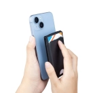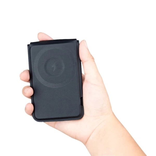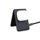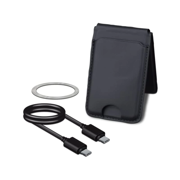 The Monroe is a lightweight, slim magnetic card wallet that doubles as a wireless charging stand. This convenient accessory provides fast charging for your phone, TWS earbuds, and iWatch while providing Foreign Object Protection. Manufactured from high-quality PU leather and incorporating a durable hinge, this foldable cardholder maintains a firm magnetic grip that allows you to customise your phone's rotation and viewing angle. In addition, this slim mag-safe wallet has an easily accessible card slot, so you can easily carry 3 plastic cards, including credit, transport or identity cards. Includes an extra Magnetic ring and Type-C charging cable. Material: PU Leather.