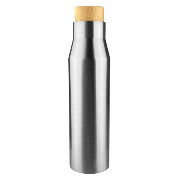 600ml matt powder coated double-walled stainless steel insulated vacuum Montico Drink Bottle. This bottle is BPA-free and will keep your drinks hot for 12 hours or cold for 24 hours so you can enjoy it throughout the day and stay hydrated. A simple yet stylish designed bottle with a stylish bamboo look screw-on lid. This product is not dishwasher safe and handwashing is recommended.