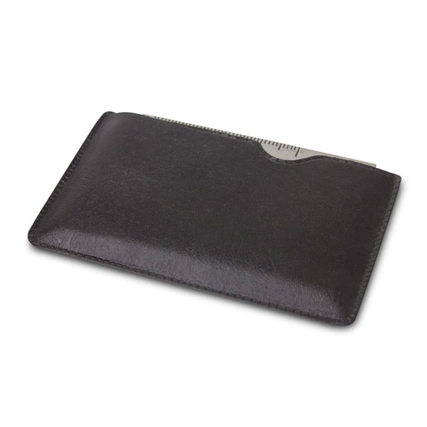 Stainless steel multi-tool that is credit card size and slim enough to fit in a wallet. It features a can opener, a knife edge, a screwdriver, a ruler, a two-position wrench, a four-position wrench, a butterfly wrench, a saw blade and a direction ancillary indicator for navigation. Multi-Tool Card can be used anywhere and is ideal for outdoor activities. It laser engraves to a stainless steel finish and is presented in a compact PU sleeve.