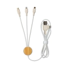 The Murano charge cable provides a patented dual Type-C and USB input connector with Type-C, 6 Pin iOS and Micro USB output connectors. This cable is manufactured from degradable corn & wheat straw, with an option for a contrasting bamboo insert, TPE and high quality 24 AWG copper for quicker charging. In addition, the Murano is packed in a recycled kraft box that can be customised to enhance your brand further. Suitable for all mobile devices, including smartphones, earbuds and power banks. Material: Degradable Wheat Straw, PP, TPE, Bamboo (optional).