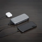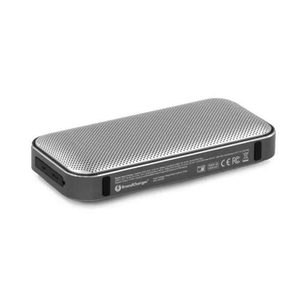 Experience the ultimate portable convenience with Nano Charge, the premium wireless speaker and powerbank combo. Its sleek matte aluminium finish, high-polish chamfered edges, and vegan suede accents exude sophistication. Equipped with a dual-driver Ambient Harmonics™ system, it delivers a powerful 10W of sound, ensuring your music is always crisp and clear. The built-in 5000 mAh powerbank charges your devices at lightning speeds, supporting up to 20W with PD3.0 and QC3.0 compatibility. The elegant aluminium control buttons add a touch of durability and style. Ideal for corporate gifting, Nano Charge seamlessly combines functionality and elegance, making it the perfect choice for professionals on the go. Includes Type-C charging cable and user manual. Material: Aluminium, Vegan Leather.