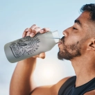 Elegant 600ml borosilicate glass drink bottle with a frosted finish and a natural bamboo lid. Borosilicate is lightweight, exceptionally strong and shatter-resistant. The bottle features a secure push on lid with a silicone seal and is presented in natural kraft gift box with NATURA branding.