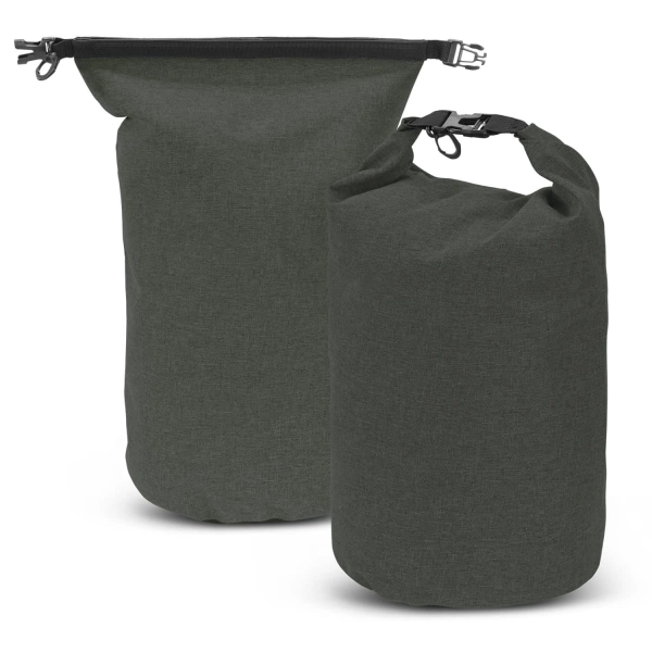 Water-resistant dry bag which is ideal for storing valuables and electronic devices in the outdoors and around water. It is manufactured from robust 300D polyester with heat sealed seams and a two-tone heather style finish. Simply roll down the top closure several times and close it with the snap lock for a Water-resistant seal.
