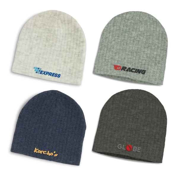 Stylish cable knit beanie made with two-tone acrylic yarn which creates a heathered finish. It is available in one size which will fit most people.