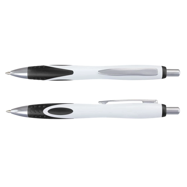 Retractable plastic ballpoint pen with a white barrel which features a double injected frosted translucent grip and shiny chrome trim. It has a blue large volume refill with 1800 metres of German manufactured Dokumental ink and can be presented in an optional pen sleeve.