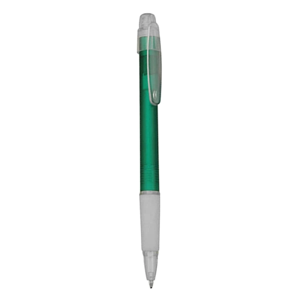 Push action plastic pen with frosted translucent barrel and soft-touch rubber grip a cheap promotional pen which is a great product for the large event giveaway. High quality Cross-Type refill with German manufactured black ink and tungsten carbide ball which brings you the better writing quality 1200 meters writing distance.