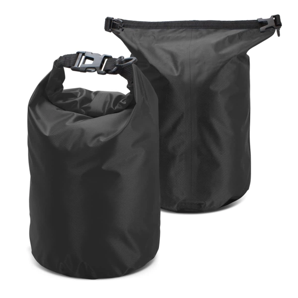Dry bag with heat-sealed water-resistant seams. It is manufactured from robust 210T laminated nylon grid cloth. Simply roll down the top closure several times and close it with the snap lock for a water-resistant seal. It is ideal for storing valuables and electronic devices in the outdoors and around water.