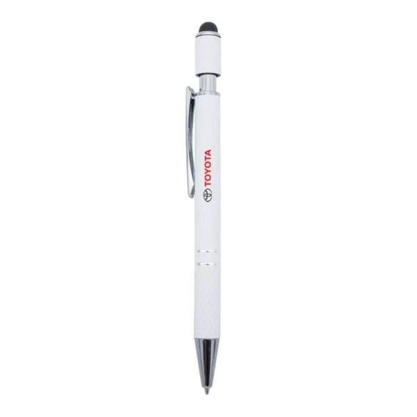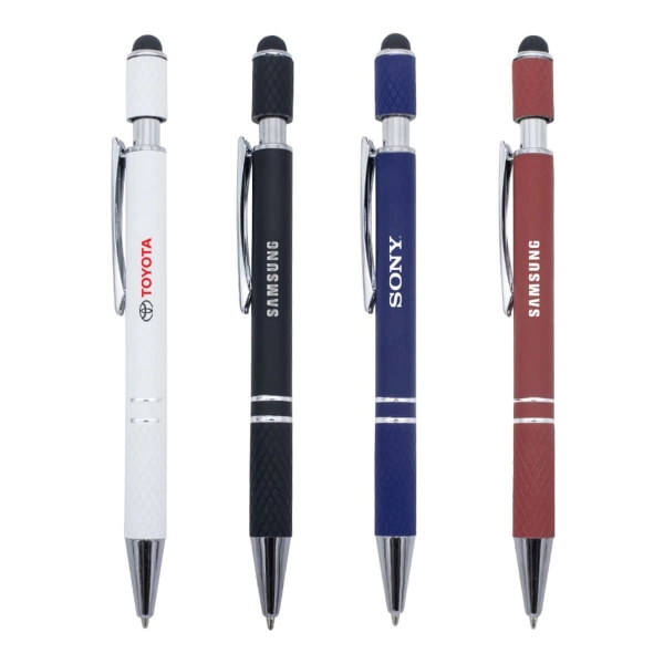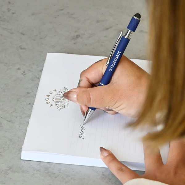 Stay productive and stress free with the Nicklin Spinner Pen! This sleek push action metal pen doubles as a calming tool, featuring a silicone stylus tip for digital convenience and a discreet spinner at the top to ease stress and anxiety. Perfect for work, study, or on the go moments!