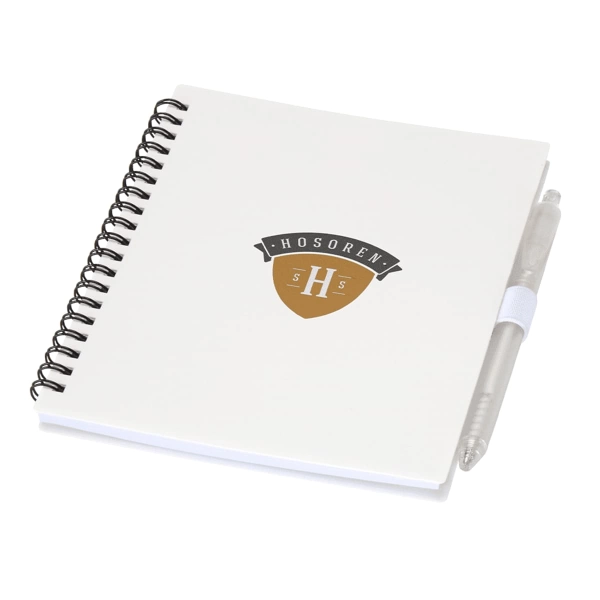 The Niove Recycled JournalBook is a sustainable choice for everyday writing. Crafted from recycled plastic, it features 70 lined sheets of smooth 70 g/m² paper. Not only does the Niove have a pen loop but is also comes with a matching recycled ballpoint pen. Available in four core colours the Niove offers a cohesive and eco-conscious writing experience for all.
