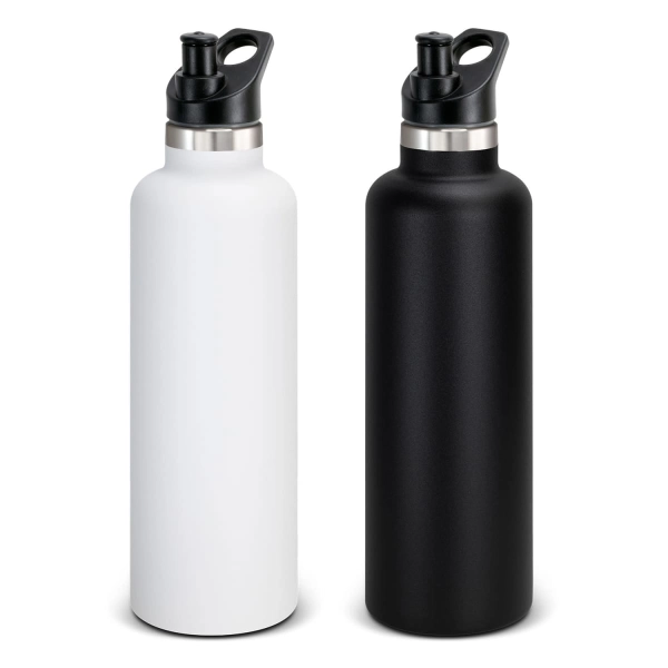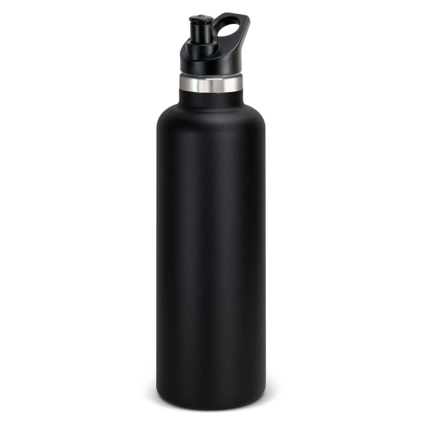 Double walled, vacuum insulated 1L stainless steel drink bottle with a tough powder coated finish and silver trim. This BPA-free bottle will keep drinks cold for 24 hours or hot for up to 12 hours and offers the choice of three lid options. Nomad is presented in a black gift box.